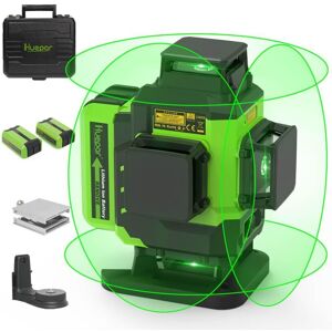 ✔️4 X 360° WITH TOP & FLOOR LINE LASER: This laser tool provides four 360 planes of laser light. The top 360° horizontal line can be used for ceiling installation. The 360° floor horizontal line is for tiling installation. With the lifting base, the 360° floor laser can raise from the surface to project over and travel past uneven surfaces or obstructions between 1" and 3.54" height. Two 360° vertical lines cross at 90°angles makes user quickly visualize and finish square layout. ✔️TWO BATTERIES & TYPE-C CHARGING PORT: The Huepar LS04CG laser level comes with 2 x 5200 mAh lithium-ion batteries for convenient replacement and continuous use. 4 indicators on the battery let users know the current battery level and charge status. There is a Type-C charging port on the batteries that can be charged separately, and the battery can also be charged by phone, laptop, power bank, car charger, etc. ✔️MULTIFUNCTIONAL LASER TOOL: The four 360° laser planes can be selected individually by separate