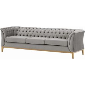 The Chesterfield Modern Wood 3-Seater Sofa combines modern design, elegance, and exceptional comfort, making it the centre-piece of any living room. This extraordinary model impresses not only with its appearance but also with its excellent craftsmanship and attention to detail. The contoured seat and backrest not only provide an aesthetic look but also comfort during long evenings of relaxation. Available in a velvet upholstery option, adding character to the sofa, blending perfectly with both modern and classic interior styles. A unique feature of this model is the wooden frame with simple wooden legs, which evoke a natural feel, adding exceptional charm and character to the sofa. The availability of a rich colour palette allows for perfect matching of the sofa to any interior, making it a true statement piece for the entire home. The sturdy frame made of beech wood and plywood ensures stability and durability, while the filling of loose seat cushions with flexible foam and serpentine springs guarantees comfort during use. Fashionable tufting on the backrest, extending to the slender, comfortable armrests, not only adds charm to the furniture but also ensures optimal support for the back. The Chesterfield Modern Wood 3-Seater Sofa is not just a piece of furniture but also an expression of personality and style. With its unique appearance and excellent craftsmanship, it will become an indispensable element of any interior, providing not only comfort but also a unique atmosphere and ambiance. Lark Manor Upholstery Colour: Light Brown