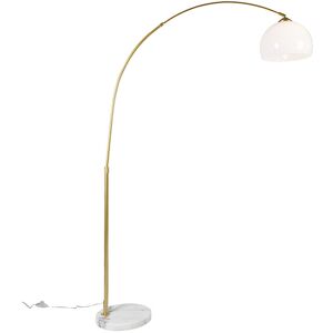 QAZQA Modern Arc Lamp Brass with Clear Glass - Arc Video Arc is a modern lamp that will fit in almost any interior. This is because the lamp is made of steel with a gold finish. The base is made of white marble and the lamp has a transparent shade for an atmospheric feel. Arc has a height of 170 cm, a length of 155 cm and a width of 30 cm. This lamp comes with a cord and plug. The cord is 250 cm long. Arc fits a light source with an E27 fitting, which is not included. Go for extra atmosphere in your home by dimming the arc lamp. Arc is dimmable (dimmer not included). You can keep looking at this arc lamp: what a gem Arc is! Bulb holder: E27 . Max 1 x 40 W, 230 V Suitable for: LED Connecting voltage: 220V/230V Protection class: IP20 Dimmable, dimmer not included,Yes, with cord and plug Lightsource: Exclusive The QAZQA Modern Arc Lamp Brass with Clear Glass - Arc is Gold/Messing. Suitable living spaces for this lamp are: Indoor lights, Dining room, Office / Work area, Bedroom, Store /