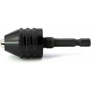 Color: black, Dimensions: approx. 68 * 22 * 30 mm Quick-release drill chuck for cordless screwdrivers for all devices with 6.35 mm (1/4 in) collet chuck from 0.3 to 6.5 mm It can be easily clamped into the chuck of a screwdriver or and holds the smallest drill bits perfectly in the middle! It can also be very noticed, so that no drill bit turns hollow! This means that the drill bit does not turn even if there is resistance! That in large chucks the small drill bits do not hold properly or do not center, this problem is finally fixed with this little helper now! Instant impact wrenches do not convert drill bits quickly and change driver to keep Tool-free change and tightening of the drill Size: 0.3 to 6.5 mm Properties: 100% quality and brand new Easy to use and install Convenient, safe and fast Simply lock on the and gives drill crowns Allows to use hex power tools to drive, but the drill crowns Specification: Color: black General hex handle input connecting rod: 6.35 mm Drill chuck