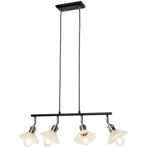 Make a statement with the Aya satin nickel 4-light diner pendant, offering height adjustability and customisable lighting angles with the adjustable spotlight heads. This fixture combines the vintage charm of fisherman-style frosted glass shades with contemporary functionality, making it a standout piece in any dining or kitchen setting. Product Type: Ceiling Pendant Bulbs Required: 4 (Not Included) Bulb Type: E27 Edison Screw Max Bulb Wattage:42 Watt Max Bulb Voltage: 240 Volt Height: 117 cm approx. Width: 15 cm approx. Length: 83 cm approx. Ceiling Cap W: 10 cm, L: 21 cm approx. Shade Height: 6 cm approx. Shade Diameter: 15 cm approx. Drop: Max: 117 cm, Min: 30 cm approx. Material: Metal, Glass Colour: Satin Nickel, Black, Frosted Technical Information Weight: 2.44 kg