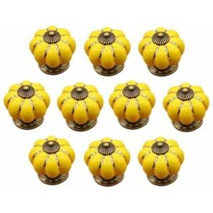Package Content: 10pcs Ceramic Pumpkin Knobs, Zinc Alloy, 10pcs Screws Modeling: Beautiful shape, compact, durable, vintage and practical, beautiful pumpkin shape has European style. Size: (LxH)4.1 x 4.1cm, Knob Hold Dia: Approx.5mm; Base Dia: Approx.2.8cm. Screw Length: Approx.2.5cm. Compatible: For cabinets, drawers, chests, wardrobes, kitchen, bedroom and bathroom furniture doors and all your DIY ideas.
