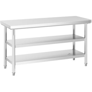 What good is modern technology when there is not even enough space for storing and sorting food in an efficient way? Stainless steel furniture is the basis for a hygienic kitchen and a safe preparation of food. The stainless steel tables by Royal Catering are a must for a professional kitchen. The stainless steel table RCAT-200/60-NW has been specially designed for the high standards of professional gastronomy. Its two-tier design offers one additional shelf. The working surface is 200 x 60 cm and offers a lot of space for your daily work. When working with food, tools or appliances, it can be very helpful to have a larger working surface. A second, lower shelf offers additional space which allows for a structured, manageable working. You can also place larger items with a height of up to 60 cm on the second shelf. There are many areas of application. Food preparation in canteens, bakeries, schools, hospitals or restaurants is done in a highly hygienic manner. The table legs of the stainless steel table RCAT-200/60-NW are height-adjustable by 2 cm and very stable on uneven surfaces. Individual component parts are partly pre-assembled. Because of the quick and easy installation with screws and an Allen key (included in delivery), the table can be individually adjusted at any time. The front edge of the stainless steel worktable is rounded, unlike many similar products. This lowers the risk of injury significantly. Both levels are provided with weld-on nuts. These have a higher carrying capacity and ensure durability. Thanks to the high-quality workmanship, all welds are very precise and ensure further stability and safety. The high-quality polished stainless steel is very durable and long-lasting. It is corrosion-resistant and resistant against damages (for example, scratches). The material is easy to clean and perfectly suited for hygienic food preparation of all kind.