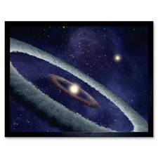 Welcome to Artery8, the home of fun, bright and joyful gifting. In a nutshell, we love colour, we love art, and we love to gift, and we dont believe these things should cost the earth either! This is a new and high-quality framed art print. We use superior grade materials and the latest printing technology to create our products. The frame comes with back fittings pre-attached for easy hanging. Proudly made in Scotland. Artery8 Space NASA HD113766 Stellar Disk Binary Star Illustration 8X8 Inch Square Wooden Framed Wall Art Print Picture with Mount in Black