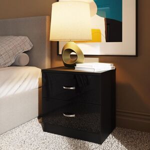 Chilton 2 Drawer Black Gloss Bedside Cabinet Table_x000D_ _x000D_ Simple, practical, functional and contemporary. The Chilton 2 drawer bedside cabinet was designed with practicality and minimalism in mind, with sleek and crisp visuals coupled with acres of drawer room all tucked into one evenly sized glamorous bedside._x000D_ _x000D_ An ideal fit for any modern bedroom, the Chilton range offers a creative blueprint to spruce up the bedroom that little bit further and houses an easy-clean and scratch-resistant melamine coating to fend off any un-warranted scratches and stains._x000D_ _x000D_ The tactile and polished metal handles offer that extra hint of the class alongside easy-glide metal runners allowing for a softer opening touch._x000D_ _x000D_ - Material: MDF Chipboard _x000D_ - Colour: Black Gloss _x000D_ - Assembly Required: Yes _x000D_ - Easy Assembly: Yes _x000D_ _x000D_ Dimensions: W 45 x H 46 x D 35cm_x000D_ _x000D_ Box Includes:_x000D_ 1x Bedside Cabinet_x000D_ 1x Assembly