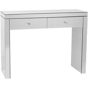 Decorative Accent Sideboard. This sideboard represents an ideal balance of modern and glam influences. Its durable MDF frame features a mirror finish which reflects and optically enlarges the room. The simple, sleek shapes perfectly complement the crystal knobs and the glimmering surface of the table, giving it a distinctive look. The table comes with two spacious drawers for all your accessories, papers or make-up. Details: Product Type: Console Table Style: Glam General Color: Silver Material Type: Glass Main Material: Glass Additional Material: MDF Frame Material: Engineered Wood Legs material: Glass Top Material: Glass Drawers: Yes Number of Drawers: 2 Shelves: No Dimensions: Depth: 35 cm Width: 100 cm Height: 77 cm Weight: 28 kg Drawer Weight Capacity: 5 kg Top Weight Capacity: 75 kg Offer Includes: 1 x Console Table Key Features: Practical Drawers with Stable Mechanism, Elegant Design, Mirrored Exterior for a Luxurious Look, Easy Care and Durable Materials, Additional Storage