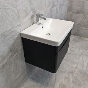 Wall Hung Vanity Unit Satin Black with Ceramic Sink Basin 1 Drawer Aegean Aegean Satin black finish vanity unit Wall hung Handleless design for an ultra modern look Soft close drawer for extra bathroom storage Includes a high quality white ceramic basin (1 tap hole) Vanity unit is made in the UK Contemporary styling High quality Sizes approximately: Width: 600mm Depth: 465mm Height: 460mm Amy Basin Mixer Tap & Waste can be added at an extra cost: Modern style basin mono mixer tap Curved spout design Single lever control Chrome finish Manufactured from solid brass Latest ceramic disk technology for accurate flow & temperature control Requires 0.2 - 6.0 bar operating pressure Tap option also includes chrome finish click clack basin waste
