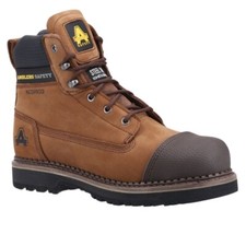 A tough and hardwearing goodyear welted safety boot crafted with full grain crazy horse leather upper, steel toe & midsole, padded collar and nitrile rubber outsole Features and Benefits • Hardwearing industrial safety boot with Goodyear Welt construction. • Steel toe cap and steel midsole. • Padded ankle collar with pull-on loop. • Goodyear welted rubber sole for great strength and durability • Three main eyelets and two speed lacing hooks. • Optional ankle-high eyelet for extra-secure lace fit. • Conforms to EN ISO 20345:2011 Safety Footwear Standards. • Safety Footwear Category: SB-P. • Toe protection tested to 200 joules impact. Steel Midsole. • Passes SRA Slip Resistance Standards. Specifications Material Composition: Leather/Textile/Other Materials Upper Outer Material: Crazy horse leather Lining Material: Polyester SoleMaterial: Goodyear welted rubber Heel Height: 25 Heel Type: Flat Fitting: Standard Fastening: Lace Up Gender: Unisex Colour Extention: Brown UK Size: 6.5 EU Size: 40 Safety Standard: EN ISO 20345:2011