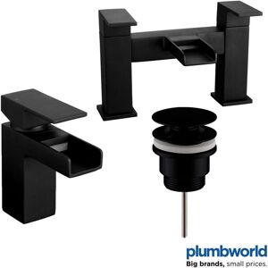 The Aquari Dakota range of bathroom taps feature strong angular lines and smooth surfaces, which combine to make a great impact on any contemporary bathroom. This set is a fantastic solution to all of your bathroom tap needs. Features and Benefits: Open top waterfall spouts provide you with a cascade of water The bold black finish will look great in any style of bathroom Easy to use taps with twin levers on the bath tap and a single lever on the basin tap Solid brass build for durability and a long life Reliable ceramic cartridge for long lasting reliability and a smoother quarter-turn action Pair with other gorgeous Dakota Waterfall Taps PLEASE NOTE: flexible tails are included for the basin tap ONLY Fantastic 5 year guarantee for complete peace of mind Technical Specifications: Bath tap flow rates (l/min): 0.5 bar – 27.0 / 1.0 bar – 37.7 / 3.0 bar – 59.2 Basin tap flow rates (l/min): 0.5 bar – 8.4 / 1.0 bar – 11.7 / 3.0 bar – 20.1 Bath tap dimensions: 229mm (W) x 126mm (H) x 130mm