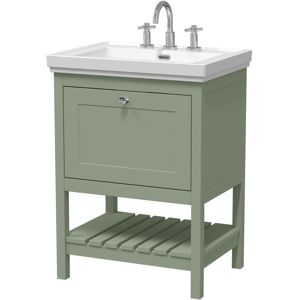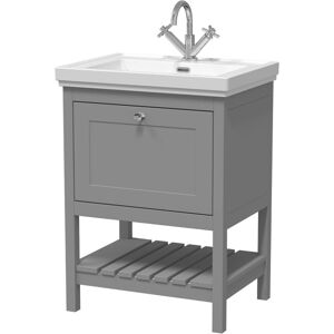 A beautiful addition and focal point to your bathroom, the Rye range of traditionally inspired furniture from Balterley combines elegant design and quality materials. With 2 soft close doors and an open slat shelf. In a beautiful Indigo Blue super matt finish for a touch of the contemporary. Manufactured from high quality materials. The soft close drawer prevents slamming. The Fireclay sink is manufactured using a centuries old process and rigorously tested to the highest standard. Tap Waste and Fixings not included. Balterley Floor Standing 1 Drawer Vanity 3 Tap Hole Fireclay Basin Blue 600mm