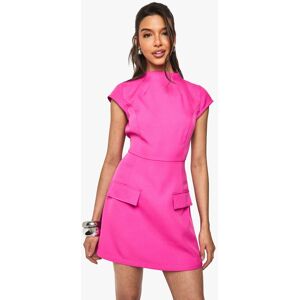 Structured woven fabric with textured finish for added dimension High neckline with cap sleeves for a sophisticated silhouette Figure-defining fitted waist that accentuates your shape Decorative pocket details at the hips for a modern twist Mini length perfect for showcasing your legs Make a statement in this head-turning mini dress from Boohoo. The high neckline and structured silhouette create a contemporary look that commands attention, whilst the textured fabric adds visual interest to this standout piece. Style with strappy heels and stacked bangles as seen on our model for a night out with the girls, or dress it down with white trainers and a denim jacket for daytime drinks. The versatile design works brilliantly for everything from cocktails at a trendy bar to birthday celebrations. The pocket details add a functional yet fashionable element to this already striking dress. Complete your look with a sleek ponytail and statement earrings to truly showcase this bold, party-ready number.