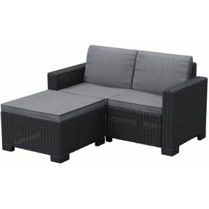 Keter California 2 Seater Outdoor Balcony Garden Furniture Chaise Lounge - Graphite with Grey Cushions The California balcony chaise lounge set is made of more than 83% recylced resin with a 6mm round wicker design. The woven wicker style creates a luxurious and trendy look and can create a focal point in any outdoor space. The set consists of a two seater sofa with wide deep seating , and square foot stool with cushion which is perfect for putting your feet up and relaxing or as an extra seating option when hosting indoor's in your conservatory, or outdoors on gardens and patio areas. The cushions included are 7.5cm thick and provide optimal seating comfort to relax and unwind. Lightweight in its structure therefore is easier to move to suit any setting and is easy and quick to assemble. The garden set is completely maintenance-free and weather-resistant, so you can enjoy the lounge set for years to come. Product Features: Ideal indoor/outdoor lounge set for gardens, conservatories