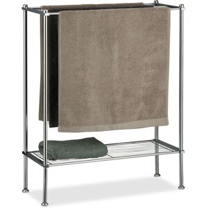 If you are looking for a reliable piece of bathroom furniture for your towels, this stand is a perfect solution. A total of 3 towel rails is at your disposable. The chrome-plated iron is of course stainless to make sure you can hang up wet towels or clothes without worry. Laundry basket and stacks of towels can be neatly placed on the bottom shelf. Thanks to its PS feet, this towel rack does not pose any threat to your tiles and flooring. Assembly can be done quickly and easily with no tools required. Chrome Towel Holder Details - Total size H x W x D: app. 79 x 64 x 26.5 cm - Shelf W x D: app. 60 x 24.5 cm - Length of legs: app. 15.5 cm - Maximum capacity: 10 kg - Material: Chrome-plated iron, PS - Weight: app. 1.4 kg Towel Rack with 3 Rails - High-quality look for your bathroom - 3 Sturdy towel rails - Grid shelf for bathroom accessories - Plastic feet protect your floors - No additional tools required Included in Delivery - 1 x Towel Stand in Pieces - Instructions - Decorative