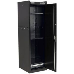 Sealey Superline PRO® Hang-On Locker - Black Features: All heavy gauged steel construction and manufactured with steel inner walls for extra strength and durability. Full height rear locking mechanism, locks full-length drawers in multiple locations. Added security provided by tumbler lock, supplied with two folding keys. Rust and solvent resistant powder coat paint finish. Hang-on Locker suitable for Superline PRO® 12 and 16 drawer rollcabs. Features two adjustable shelves and a lockable drawer. Technical Details: • All heavy gauged steel construction and manufactured with steel inner walls for extra strength and durability. • Full height rear locking mechanism, locks full-length drawers in multiple locations. • Added security provided by tumbler lock, supplied with two folding keys. • Rust and solvent resistant powder coat paint finish. • Hang-on locker suitable for Superline PRO® 12 and 16 drawer rollcabs. • Features two adjustable shelves and a lockable drawer. • Overall Size (W x