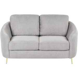 Retro-Inspired Loveseat. Make yourself comfortable on this unique loveseat with a curvy shape, which will certainly create a cosy atmosphere in your interior. The thickly padded seat and fluffy backrest cushions guarantee high comfort of use. Golden metal legs emphasize the unique colour of the upholstery and add elegance to the whole design. Details: Product Type: 2 Seater Sofa Style: Traditional General Color: Grey, Gold Shade: Light Grey Material Type: Fabric Main Material: Fabric Additional Material: Plywood Filling Material: Foam Material Composition: 100% Polyester Arm Style: Flared Pattern: Solid Seat Construction: Sinuous Springs Seat Foam Density: 30 kg/m3 Seats Up To: 2 People Dimensions: Armrests Height: 55 cm Depth: 86 cm Seat Thickness: 18 cm Seat Height: 47 cm Width: 153 cm Height: 88 cm Seating Surface: 120x53 cm Weight: 35 kg Weight Capacity per Person: 100 kg Offer Includes: 1 x Loveseat Key Features: Very Comfortable, Works Great with Many Interior Styles, Trendy