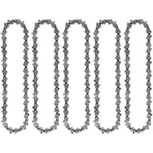 [5 PACKS ] : Widely Use 6 inch Chains replacement for market All 6-inch Mini Chainsaws Cordless Electric Portable Battery Handheld Chainsaw. [POINTED TEETH]: With pointed and wear-resistant gear teeth, cutting more efficient and faster, with high hardness, the carving chains are not easy to break, and practical, can bring you much convenience and saving time. [ AND STRONG CHAIN]: Chain is deeply quenched to smooth cutting and optimal lubrication. The service life of the saw chain is longer and smooth, wear-resistant, and cuts smoothly. [EASY TO INSTALL AND REPLACE]: Just turn the screw, remove the chain, then replace the new chain, and finally tighten the screw. Please pay attention to the installation direction of the chain when you install and replace. and small design for easy replacement and installation. Features: they can be applied to a variety of materials. Intended for cutting, carving and shaping wood, cutting plywood, laminated flooring, chipboard, plastic, ice, rubber,
