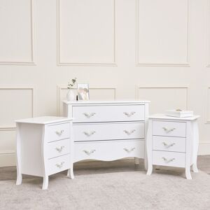 This Large 3 Drawer Chest of Drawers and Pair of Bedside Tables from the Elle Stone Range is a stunning furniture set that will bring a touch of luxury and elegance into your home. These modern yet contemporary pieces are designed with a sleek gold frame and golden handles and complete with a stone pale taupe finish. This set includes a beautiful three drawer chest of drawers and pair of one drawer bedside tables. Whether you place this beautiful set in your bedroom hallway or living room it will always lift the atmosphere with an air of luxury and sophistication. Due to its contemporary look and sleek design this furniture collection could easily blend into a wide variety of interior styles. This set is also available in other colours and matching items are available in this collection and can be purchased separately. Please Note: All items in this set require assembly. It will take approximately 30-60 minutes to assemble each piece. The chest weighs 36.5kg while each bedside weighs 12.2kg. Part of a large collection of bedside tables available in a wide variety of styles colours and designs. Want to view all items within this range? Browse our Elle Range category for more options. Colour: Stone Taupe Beige Gold Material(s): Coated MDF Metal 90.5cm x 78cm x 39cm (width x height x depth) Measurements (other): Bedside Table: 57.5cm x 40cm x 40cm (height x width x depth) Assembly required Assembly Time: 30-60 minutes