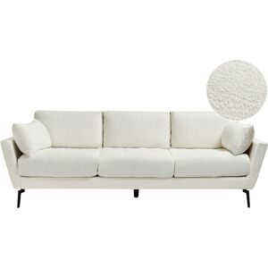 Minimalist Couch with Additional Cushions. Discover ultimate comfort and modern elegance with this spacious sofa, designed to enhance any living space. Upholstered in high-quality boucle fabric, it offers a soft-to-touch feel and timeless sophistication. The tufted, thickly padded seats provide exceptional comfort and a touch of classic detail, while two additional cushions with removable covers ensure effortless maintenance. Sturdy metal legs add a sleek, minimalist touch, perfectly balancing style and durability. This sofa is an elegant centrepiece for contemporary interiors, ideal for lounging or entertaining. Details: Product Type: 4 Seater Sofa Style: Minimalist General Color: White, Black Shade: Off-White Material Type: Fabric Main Material: Boucle Additional Material: Metal Filling Material: Foam Material Composition: 100% Polyester Arm Style: Track Pattern: Solid Seat Construction: Pocket Springs Seat Foam Density: 25 kg/m3 Seats Up To: 4 People Dimensions: Armrests Height: 61