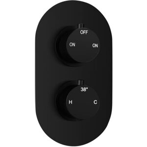 Features and Benefits: Shower Kit and Shower Head sold separately (Available in our Store) Shower valve supplies water to 2 outlet Manufactured from high quality brass Easy to install and clean Guarantee: 5 Year on body and finish (3 year on cartridge and 1 Year on other parts. Do not cover any product that has been modified or altered in any way) Shower Type Thermostatic Shower Valve Controls 2 Shower Valve Position Concealed Valve Shape Oval Handle Type Round Shower Valve Outlets 2 Shower Valve Height 215mm Shower Valve Width 120mm Shower Valve Depth 74mm Valve Orientation Verical Material Brass Colour Matt Black Brand Signature Style Modern Market Domestic EAN Barcode 5055543415007 Manufacturer Part Number(s) SIGN106796