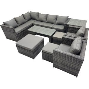 This Modern deluxe rattan garden furniture is best for multiple occasion. The Rattan set is strong durability which lasts for a long time, it also has strong tempered table top glass. Cushions are included and are fitted to the shape of the sofa and chairs for comfort. This wonderful product will help you showcase any garden, patio or conservatory. Set Dimensions: • 1 x Three Seater Sofa With Two Arm : 177W x 65D x 66H cm • 1 x Three Seater Sofa With Single Arm : 167W x 65D x 66H cm • 1 x Side coffee table :65L x 65W x 66H cm • 1 x Big Footstool :65L x 65W x 34H cm • 2 x Fully Assembled Stool: 40L x 40w x 34H cm • 2 x Chair :74W x65D x66H cm • 1 x Oblong Coffee table: 105L x 50W x 48H cm Dark grey mixed rattan with dark grey fabric .Color may some difference due to light or monitor .we are unable to return the item due to color problem . Items Comes Flat Packed And Easy Assemble,Sturdy Galvanized Steel Tube Metal Frames With Powder Coating To Prevent The Rust Flat PE Rattan Completely