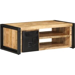 Relax and enjoy entertaining your family and friends around this coffee table! Robust and stable material: Solid mango wood, a robust tropical hardwood, is highly favoured for furniture making for its exceptional durability and strength. Its beautiful wood grains make every piece of furniture slightly different from the next. Ample storage space: This side table provides ample storage space for keeping your magazines, books, DVDs, remote control and other small items well-organised and within reach. Stable and sturdy tabletop: The sturdy tabletop is ideal for placing your drinks or any other necessities you need close at hand. With legs: Elevated legs make it easier to clean underneath the cabinet, maintaining a tidy appearance and ensuring better airflow around electronic equipment. Good to know: Each item is unique with variations in colours and grains. The delivery is random, ensuring the exclusivity and individuality of your product. Material: Solid rough mango wood, iron