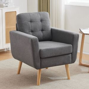 Product Features Mid-Century Modern Design: The mid-century modern accent of this chair ensures that it will be stylish for years to come. The backrest of the accent chair is decorated with tufting, and the stylish and retro appearance adds a delicate and beautiful look to your home. Our living room chairs can make your small room look chic and comfy. Sturdy and Stable: You don’t have to worry about its durability! Our armchair with a sturdy wooden frame can easily support the weight of 150kg (330lbs). Solid wood legs with padding under the feet protect your floors from scuffs and scratches. So it will last a long time in your living space. Comfy and Supportive: Upholstered seats and armrests create a comfortable chair seating experience. The single sofa chair seat and back cushion are made from a highly resilient sponge, which is composed of multiple layers of high-density sponges, allowing you to rest and read throughout the day without sinking. High-quality Material: This luxurious