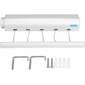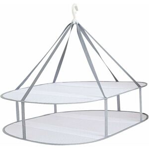 Radiator or balcony drying rack for hanging socks, towels, etc. The small drying rack is 3 m long; takes up little space in the bathroom. Mount the mini drying rack on doors or showers; several hanging options Increasingly adjust the supports of the drying rack structure on the balcony or on the radiator The steel laundry rack, ideal for outdoors and indoors or for the next camping trip Hanging drying rack in detail Dimensions H x W: approx. 16 x 52 cm Depth: approx. 34 cm Internal dimensions W x D: approx. 29 x 48 cm Total length of the drying rack: approx. 3 m Space between the crossbars: approx. 5.5 cm Material: Steel, plastic Color: white, gray Suitable for outdoor and indoor use Hang it on the radiator, balcony, shower or door Portable and space-saving; also suitable for camping trips For towels, socks and underwear. Scope of delivery Hanging dryer Delivery without decorative items Dry laundry in a space-saving way Flexibly adjustable to objects Ideal for vacation trips For