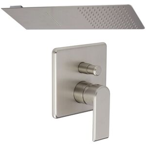 The brushed nickel Milano Hunston two outlet shower system which consists of a manual diverter shower valve square ceiling-mounted recessed shower head and a hand shower kit is the ideal choice to not only add a modern and minimalist look to your bathroom but also provide a luxurious showering experience. With a single lever handle to adjust the temperature and flow of water and a diverter to switch between the outlets the valve is made from premium quality lead-free solid brass. The anti-corrosive stainless steel shower head delivers rainfall water coverage from its easy to clean silicone nozzles to leave you feeling refreshed with the soothing spray from the hand shower enhancing the relaxing effect further. - Modern two outlet shower system design to complement any contemporary bathroom - Anti-corrosive stainless steel 400mm ceiling-mounted square recessed shower head - Lead-free solid brass valve incorporates ceramic disc technology to prevent leaks and drips - Includes a hand