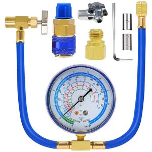 The R134A AC refrigerant charge hose kit with gauge is suitable for both domestic refrigeration and automotive R134A systems. The cap tap is also compatible with both the R134a puncture type and the R134a self-sealing type. An R134a puncture tap for direct connection to the puncture refrigerant canister is fitted to one end of the hose. The other end is fitted with a 1/4 SAE female fitting to connect to the fridge's male fitting. Coloured gauge with Fahrenheit and R134a scaled readings. BPV-31 Poppet Tap Valve, compatible with 1/4inch, 5/16inch, 3/8inch O.D. pipe. Interchangeable Part Numbers: AP4502525, BPV31D, GPV14, GPV31, GPV38, GPV56, MPV31. Constructed of metal for durability and corrosion resistance, this is a convenient replacement part. To connect the AC refrigerant charging hose to the self-sealing refrigerant tank, use the R134a self-sealing adapter with RH thread. The R134A AC charge hose kit work with the puncture type refrigerant canister if this adapter is removed.