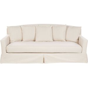 Pillow Back 3 Seater Sofa. This functional yet classic sofa for three makes a splendid addition to both, large and limited spaces. It features a robust frame, wooden legs and light and fluffy filling for stability and comfort. Its easy-care and low-maintenance upholstery can be easily taken off, and replaced with another variant suitable for this model. With such a solution, you can easily refresh the looks of the sofa and change things up in your interior once in a while. Thanks to the traditional design, the sofa complements a wide range of modern and contemporary settings. Details: Product Type: 3 Seater Sofa Style: Traditional General Color: Beige Shade: Light Beige Material Type: Fabric Main Material: Fabric Additional Material: Pine Wood Filling Material: Foam Material Composition: 100% Polyester Arm Style: Track Pattern: Solid Seat Construction: Sinuous Springs Seat Foam Density: 28 kg/m3 Seats Up To: 3 People Dimensions: Armrests Height: 59 cm Depth: 107 cm Seat Thickness: 16