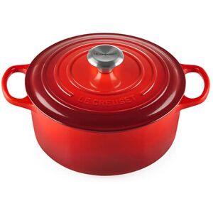 The iconic Le Creuset Signature Cerise Cast Iron 28cm Round Casserole is perfectly designed for stews, casseroles, roasts, soups and baking. Make mouth-watering and memorable meals that are full of intense flavour in this one-stop pot. Advanced sand interior enamel - durable, easy to clean and specifically engineered to resist staining with a higher resistance to wear and tear. Significantly improves durability and performance, being 35-40% more resistant to thermal shock and 16% more resistant mechanical shock (chipping from utensils). It is also more resistant to acid attack and 24% more resistant to enamel erosion. There is less absorption of food colours and it is more durable against repeated dishwasher use as well as being 45% easier to clean. Large handles are easier to grip and lift when full, even when wearing oven gloves or mitts. Stylish and durable brushed stainless steel finish. Easy, comfortable and natural grip, suitable for all temperatures. Tight fitting lid with built in stabilisers for enhanced moisture lock in and flavour, during cooking. Handcrafted at the Le Creuset foundry in northern France since 1925, Le Creuset casseroles are made from premium quality cast iron ensuring each product is beautifully finished and long lasting. Le Creuset cast iron cookware also works efficiently at low to medium cooking temperatures and retains heat effectively, ensuring food stays warm for longer. Le Creuset cast iron casseroles are suitable for all hob types (including ceramic, halogen, induction, gas and oil or wood) and are also oven and grill safe. Dishwasher safe, although hand washing is recommended. The Le Creuset Cerise 28cm round cast iron casserole is ideal for 6-8 people and has a capacity of 6.7L. Dimensions: L37.7cm x W29.7cm x H18.4cm. Weight: 6.13kg. This Le Creuset Signature Cast Iron 28cm Round Casserole is supplied with a manufacturer's lifetime guarantee.