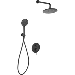 Wall-mounted Shower Set with Rainfall. Elevate your bathroom with this wall-mounted shower set featuring a concealed design for a clean, visually aesthetic look. Its sleek components merge seamlessly with your wall, creating an uncluttered feel. Featuring angle adjustable rainfall and handheld shower head with three spray modes – calming rainfall, invigorating massage and powerful jet stream – it transforms everyday hygiene routine into an enjoyable and relaxing experience. Details: Product Type: Fitting Style: Modern General Color: Black Material Type: Metal Main Material: Brass Additional Material: Stainless Steel Hose`s Length: 155 cm Finish: Matt Number of Handles: 1 Dimensions: Depth: 41 cm Width: 23 cm Height: 180 cm Weight: 3 kg Offer Includes: 1 x Concealed Installation Box, 1 x Shower Set Key Features: With Soothing Rainfall Function, Suitable for the Standard G3/8 Connection Type Hose, 3 Spray Patterns for The Best Shower Experience, Rubber Nozzles for Easy Descaling,