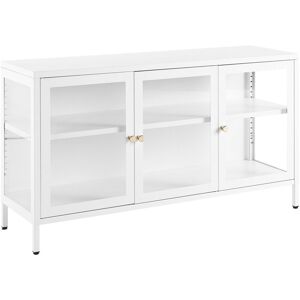 Elegant Cabinet with Glass Front. This elegant sideboard is a great storage solution for any hallway, living room, and home office. Sturdy steel construction makes the piece stable and long-lasting. Capacious compartments behind tempered glass doors provide ample storage space, perfect for books, dishes, and decorative elements. Details: Product Type: Display Cabinet Style: Modern General Color: White Material Type: Metal Main Material: Steel Additional Material: Tempered Glass Legs material: Metal Shelves number: 2 Doors Opening: Standard Drawers: No Finish: Powder Coated Key Locked: No Number of Doors: 3 Shelves: Yes Dimensions: Depth: 35 cm Width: 115 cm Height: 65 cm Weight: 22 kg Top Weight Capacity: 30 kg Offer Includes: 1 x Display Cabinet Key Features: Adjustable Shelves, Elegant Design, Stable and Durable Construction, Leg Caps for Surface Protection, Plenty of Storage Space Assembly Information: Full Assembly Required. 45-60 min. Additional Information: Please note that for