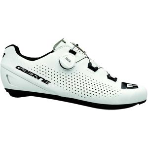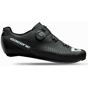 The GAERNE Carbon G.Tuono Road Shoes Iridium are high-performance men's cycling shoes designed for serious road cyclists. Made from carbon fiber, these shoes offer maximum stiffness and power transfer for optimal pedaling efficiency.The sleek iridium colorway adds a stylish touch to these shoes, making them stand out among other cycling shoes. They feature a precise fit with a BOA L6 fastening system, allowing for easy and quick adjustments on the go. This system evenly distributes pressure across the foot, ensuring a comfortable and secure fit.The Carbon G.Tuono Road Shoes also come equipped with an air ventilation system, promoting breathability and keeping feet cool during intense rides. The perforated tongue and mesh inserts enhance airflow, preventing overheating and moisture buildup.These shoes boast a lightweight construction, reducing the overall weight and enhancing performance. The anatomic insole provides arch support and cushioning to enhance comfort during long rides. Additionally, the non-slip heel cup prevents any unwanted slipping, providing stability and control.With their stiff carbon sole, these shoes deliver exceptional power transfer, allowing for efficient energy transfer from the cyclist to the pedals. This results in improved speed and performance on the road. The shoe's sole is also compatible with most road cleat systems, offering versatility and easy compatibility with different pedal types.Overall, the GAERNE Carbon G.Tuono Road Shoes Iridium are a top choice for road cyclists looking for high-quality, performance-driven footwear. With their advanced features, comfortable fit, and stylish design, these shoes provide an excellent choice for any serious cyclist.