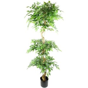 This exquisite 180cm Artificial Ficus Tree Triple Ball Topiary with 1984 leaves is a luxurious addition to any space. Standing at 180cm tall and measuring 70cm x 70cm, it exudes elegance and sophistication. The highly realistic premium quality artificial plant comes potted in a plain black plastic pot, ready to display. For an even more impressive look, consider placing it inside a larger decorative planter. With no watering required, this low-maintenance beauty will benefit from the occasional dusting or a gentle hosing off in the garden. Its botanically accurate foliage ensures a lifelike appearance, making it a stunning addition to any setting. Simply arrange it upon delivery and watch it transform the space into a lush, green oasis. This product is designed for indoor use only.