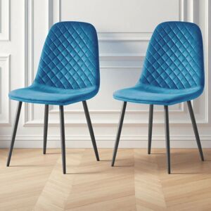 Ainpecca - 2X Teal Dining Chairs Velvet Padded Seat Metal Legs Kitchen Home Office uk