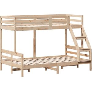 This wooden bunk bed is elegant and functional, making it a perfect addition to any room with limited space. Solid pine wood: Solid pine wood is a beautiful natural material. Pine wood has a straight grain, and the knots give the material its signature, rustic look. Safe design: The loft bed is designed with safety in mind. It features guardrails to keep the user from rolling out while sleeping. Suitable for limited space: The bed frame makes an excellent choice for any room with limited space, it provides two individual beds with compact design. Good to know: The delivery includes a bed frame only. The mattress is not included. You can check our shop for the matching mattresses. Colour: White Material: Solid pine wood Slat material: Plywood Overall dimensions: 207 x 125.5 x 145 cm (L x W x H) Suitable mattress size: 90 x 200/120 x 200 cm (W x L) (mattress not included) Assembly required: Yes SKU: 3207186 WARNING. This bed is not suitable for children under six years due to the risk