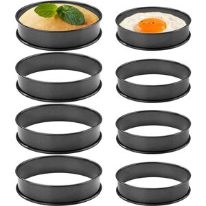Non Stick Crumpet Rings SetThe English waffle-rings are made of food-grade stainless steel, which is and not easy to bend and deform, meeting your needs for a perfect round mold. Two mini sizes: 3.15inch/8cm and 3.93inch/10cm diameter, 1inch/2.5cm high. Meet different needs Upgraded Non-Stick Black Coating, Unlike ordinary waffle-rings, our waffle-rings have been upgraded to better avoid sticking to the ring. We've engineered a non-stick coating that's perfect for baking delicate-looking desserts. Its non-stick properties also easy to clean. We're sure Classic Black is a color you'll really love! Designed with double rolled edges for convenience, stainless steel waffle-rings are rounded and feature beautifully double rolled edges that are smooth to the touch and protect your hands/pan from scratches. Each nonstick pancake ring is baked evenly for perfect rise and can also be used to hold batter in place on a griddle or griddle. Waffle-patty rings for baking are best suited for making