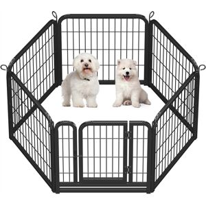 Our pet playpen is crafted with premium-quality, black-finished steel, guaranteeing long-lasting durability. Metal stakes connect the panels swiftly, allowing you to add or remove sections to create different shapes with ease. Ideal for pets, this fence creates a secure and enclosed environment, while still allowing for play and exercise with its open-top design. It's an excellent tool for either limiting your pet's space or keeping them away from other animals. The amazing part is that it's incredibly easy to set up without requiring any tools, be it indoors, during RV camping or traveling, or for other yard activities. Yaheetech