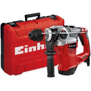 The rotary hammer TE-RH 38 3F with pneumatic impact mechanism is a high-quality, extremely versatile powerhouse for demanding construction, renovation and caulking work. With hammer drilling and chiselling with and without chisel fixing, the all-rounder has the three functions for universal use. The main handle of the impact hammer is vibration-damped and signals the optimum contact pressure via ""press control"" – an important support for low-wear yet fast working. The aluminium gear head of the rotary hammer is robustly constructed, and 2 LEDs let you know when it's ready to use and informs you of the service requirements due to brush wear. Comes in a practical E-Box Basic transport and storage case Hammer drill with pneumatic hammer action for very good drilling Robust SDS-Max tool chuck 3 functions: hammer drilling, chiseling with and without fixation Press-control: visualizes the optimum pressure Speed electronics for smooth initial drilling Low vibrations thanks to