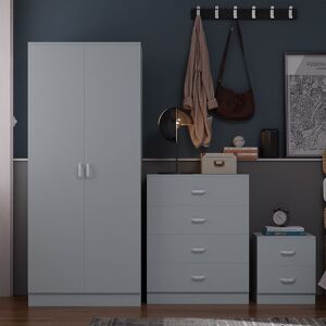 Transform your bedroom into a stylish haven with our Esher 3 Piece Grey Bedroom Furniture Set. This set includes a sleek chest of drawers, a spacious wardrobe, and a handy bedside table to help keep your bedroom organized. The Esher Chest of Drawers features a modern design with clean lines and ample storage space, including four drawers to hold all your clothing essentials. The wardrobe is perfect for keeping your clothes neat and organized, with a large hanging rail and plenty of shelf space for folded items. The matching bedside table is the perfect finishing touch to this beautiful set. It features 2 spacious drawers, providing ample space to keep your nighttime essentials close at hand. Crafted from high-quality materials, this set is built to last and will add a touch of elegance to any bedroom decor. The soft grey finish is versatile enough to blend seamlessly with a wide range of styles, making it an ideal choice for any home. Dimensions Wardrobe: Height: 180cm Width: 75cm