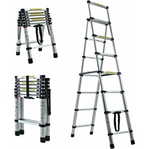 GENERAL DESCRIPTION This premium telescopic ladder is made from corrosion-resistant aluminum alloy. It extends from 2M to 2.3M (6.5ft to 7.5ft) and has a maximum load capacity of 150kg. The ladder features a telescoping design with 6+7 steps, allowing for easy height adjustment. It is lightweight at 11.4kg and folds down to a compact height of 72cm for easy storage and transport. This versatile ladder is suitable for various tasks, both indoors and outdoors. TECHNICAL SPECIFICATIONS Product Type: Telescopic Ladder Structure: A-Frame Multi-Purpose Ladder Material: Aluminum Number of Steps: 6+7 Step Interval: 30cm (11.8 inches) Max Load: 150kg (330lb) Extendable Height: 2m + 2.3m (6.56ft + 7.54ft) Close Height: 72cm (2.36ft) Weight: 11.39kg (25lb) OTHER INFORMATION This ladder is certified to European Standard EN131 and features rubber feet for added safety and skid resistance. It is ideal for a variety of uses including maintenance, painting, and reaching high places.
