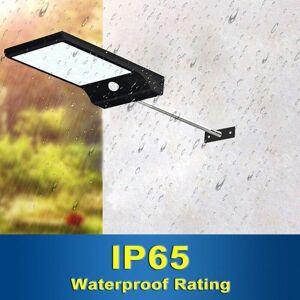 WIRELESS SOLAR LIGHTS - Wireless solar street lights: upgraded solar panel and built-in 3.7V/2600mAh rechargeable battery absorb solar power at daylight and illuminate darkness at night?convenient and environmentally friendly. LIGHT & MOTION SENSOR: Automatically turn OFF in day time to save energy, Automatically light when people approach to ensure safety in dark condition. ULTRA BRIGHT - Ultra Bright solar wall lights: 36 LEDs and 450 Lumen max motion sensor light?high brightness and low energy consumption. VERSATILE SOLAR LED LIGHTS - Includes aluminum mounting poles allowing better exposure to sunlight and larger illuminate area; the light can also be directly mounted to wall as sconces or seated indoors as reading lights?powerful and multi functional. DIMENSIONS - Each Light Measure As Follows 9.5 x 10 x 9.5 cm