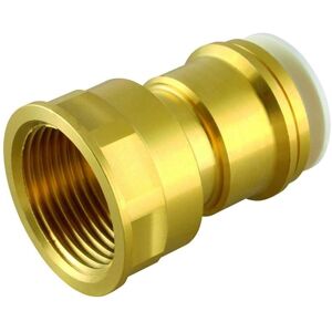 JG speedfit female coupler tap connector push-fit fitting for the connection of plastic or copper pipes to a male thread fixture or appliance. The female coupler is ideal for the connection of taps and toilets. Simply push the push-fit fitting fully onto the pipe and hand turn onto the thread. To demount the connection, push the collet towards the body of the push-fit fitting and pull the pipe to release. The JG speedfit female coupler tap connector is up to 40% faster to install than traditional methods and is easier to use in confined spaces by removing the need for hot works and tools. Designed, manufactured and assembled in the UK. Instant push-fit and hand-tighten connection Install and demount in seconds without tools Safe flame-free installation, with no hot works, glue or flux Grip & Seal collet with stainless steel teeth and main O-Ring seal Compatible with Speedfit PEX and polybutylene plastic pipe (inserts required) and copper pipe Suitable for hot and cold water and