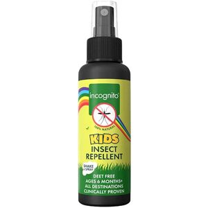 incognito Kids Insect Repellent - 100ml incognito Kids Insect Repellent protects against mosquitoes, ticks, and other biting insects. Its unique manufacturing process produces the purest and strongest form of natural PMD, offering 100% protection for over 4 hours against Asian Tiger mosquito bites. This DEET-free, 100% natural formula is designed for little ones and sensitive skin. Suitable for all tropical destinations, it is ideal for everyday use by active kids during the summer. Safe for six months plus Suitable for sensitive skin 100% Natural Gentle citrus scent Over four hours of protection from Asian Tiger mosquitos Suitable for all destinations worldwide Made in the UK About incognito incognito was born when co-founders Patricia and Howard experienced first-hand the downsides of using synthetic insect repellents. incognito is a natural insect repellent that works, with the ethos of not harming the wearer or the environment.