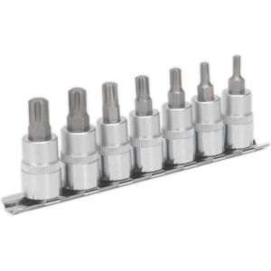 Forged Chrome Vanadium steel 3/8"Sq drive sockets with S2 steel ribe bits. Knurled ring to assist gripping of socket with oily fingers. Supplied on socket rail. Features & Benefits: • Contents: M4, M5, M6, M7, M8, M9, M10. • Forged Chrome Vanadium steel 3/8"Sq drive sockets with S2 steel ribe bits. • Knurled ring to assist gripping of socket with oily fingers. • Supplied on socket rail. • Lifetime guarantee*. • Model No. AK6232 Specifications: Model No AK6232 Brand: Premier Contents: 3/8"Sq Drive 50mm Ribe Socket Bits; M4, M5, M6, M7, M8, M9, M10 Drive: 3/8"Sq Maximum Length: 50mm Minimum Length: 50mm Nett Weight: 0.41kg