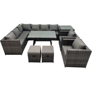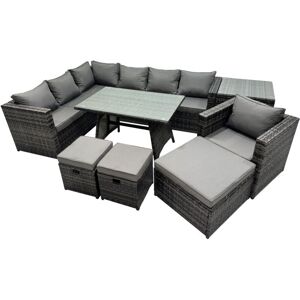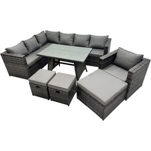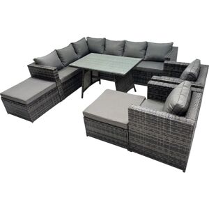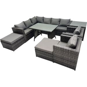 This deluxe PE rattan sofa set is a great addition to patio or garden, made of high quality PE rattan and durable galvanized steel construction for sturdiness and long lasting. Durability ,and can be put outdoor all year round. Pls kindly leave your mobile number at checkout for not delaying your shipment . Set Dimensions: 1x Sofa with double armrest size: 176W x 65D x 66H cm; 1x Sofa with single armrest size:166W x 65D x 66H cm; 1x Chair:74W x 65D x 66H cm; 1x Big Footstool :65L x 65W x 34H cm; 2x Small fully assembled footstools 40L x 40W x 34H cm; 1x Dining Table Size: 110L x 70W x 70H cm; Sofa Weight Capacity: 250kg; Table Weight Capacity: 50kg Dark grey mixed PE Rattan .Color may some difference due to light or monitor .we are unable to return the item due to color problem . Items Comes Flat Packed And Easy to Assemble, Sturdy Galvanized Steel Tube Metal Frames With Powder Coating To Prevent The Rust. Flat PE Rattan Completely Made By Hand, 5mm Thick Transparent Tempered Glass With Sucker On Surface To Prevent Sliding8 cm Thick Seat Cushion With Soft Pillow Back Cushion Gives You More Comfort Low Maintenance ,Removable Cushion Cover And Easy Move To Different Place. Pls Keep the Cushion Indoor Or put on With Rain Cover When Not In Use . put on The Furniture With Rain Cover If Not in Use For Long Time . Fimous 10-seater Outdoor PE Rattan Sofa Set with with Chair 3 Stools in Dark Grey