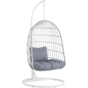 Swing Egg Chair with a Sitting Cushion. Hanging chairs are an interesting alternative to regular seating. Their unique construction allows relaxing by means of a comfy cushion and a gentle rocking motion, providing an effective method of unwinding. Built on a durable steel frame which is covered with string, the piece is set to last, having great looks all the time. Details: Product Type: Hanging Chair Style: Boho General Color: Black, Grey Shade: Taupe Material Type: Metal Main Material: Fabric Additional Material: Steel Legs material: Metal Seat Material: Fabric Material Composition: 100% Polyester Finish: Powder Coated Seat Foam Density: 25 kg/m3 Dimensions: Base Dimensions: 102x102 Depth: 102 cm Seat Thickness: 15 cm Seat Height: 35 cm Width: 102 cm Height: 199 cm Seating Surface: 83x70 cm Weight: 34.5 kg Weight Capacity: 140 kg Offer Includes: 1 x Chair, 1 x Seat Cushion, 1 x Pillow, 1 x Stand Key Features: Curved Shape for Maximum Comfort, Works Great with Many Interior Styles,