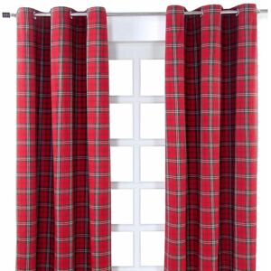 100% cotton hand woven fabric curtains. These curtains have been made with a yarn dyed woven fabric and will look much richer in appearance than any printed curtain. They are yet surprisingly affordable as Homescapes weaves the fabrics themselves before sewing the curtains. Suitable for all rooms including the children rooms. Made in contemporary ring top or eyelet style. Coordinating cushions, floor cushions and fabric by the meter is also available with Homescapes to make your own soft furnishings. The curtains are not lined and to make them light proof, these will have to be used in conjunction with a black out curtain. Homescapes Edward Tartan Check Ready Made Eyelet Curtain Pair in Red Size: 117 cm width x 137 cm drop