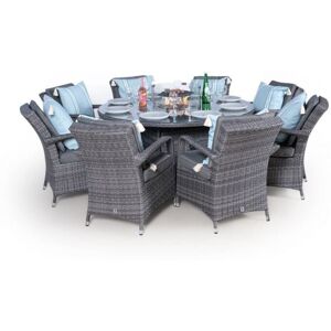 ARIZONA 4 SEATER SQUARE RATTAN FIRE PIT DINING SET MAIN FEATURES UV resistant flat rattan weave 110cm square dining table with 8mm tempered glass top (minimal assembly required) Firepit system with electronic control panel Tempered glass safety surround Long lustre decorative fire glass BBQ griddle included 4 x luxury dining chairs with padded seat and back (fully assembled) All weather outdoor cover included Rust proof aluminium frames Dual density seat and back cushions Cushions feature piped edges Removable seat covers for easy maintenance 5 year frame warranty ADD WARMTH TO YOUR OUTDOOR SPACE WITH THE ARIZONA FIRE PIT GARDEN SET. Consisting of a feature packed 110cm gas fire pit table, 4 luxury padded dining chairs, BBQ griddle and an all weather cover this set provides everything you need to enjoy alfresco family meals in comfort and style. The Arizona range sets itself apart from the rest with its luxury rattan dining chairs featuring wide curved armrests and contoured back